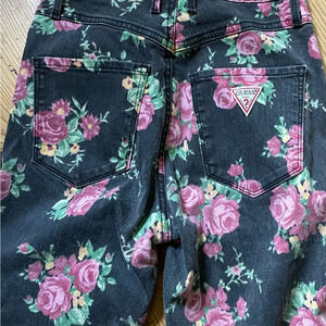 Guess Jeans 1981 3 Zip Crop Vintage Black Floral Roses Size 24 80s Y2K Style