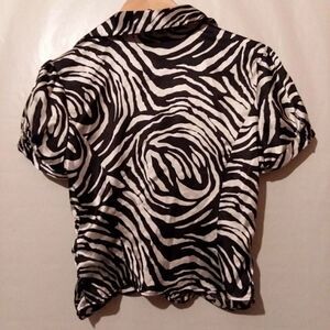 Guess Jeans Zebra Animal Print Gray & Black Short Sleeve Crop Top Large