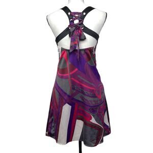 Guess Jeans Bold Pattern Satin Racerback Ribbon Tie Up Back 90's Vintage 3