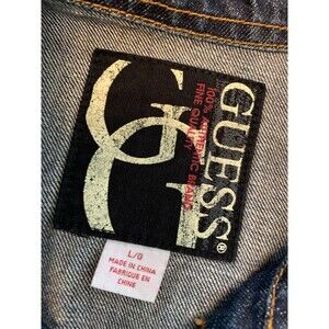 Guess Jeans Denim Trucker Jacket Mens L Full Button Type 2 Dark Wash Denim