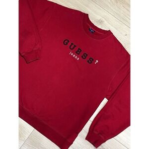 Guess Jeans Embroidered Logo Sweatshirt XL Pullover Crew Neck Red Vintage