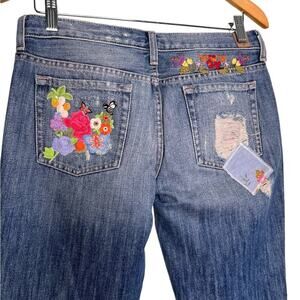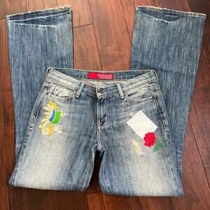 Guess Jeans Flared Bootcut Low Rise Embroidered Destroyed Flared Jeans Size 28