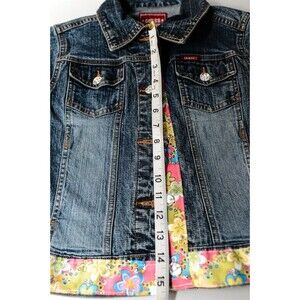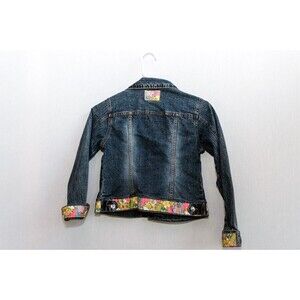 Guess Jeans Guess? Girls M 10/12 Denim Jacket hand decorated bling with 60's inspired floral fabric