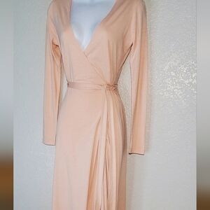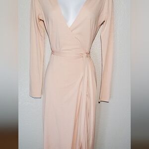 Guess Jeans Light Pink Long Sleeve True Classic Wrap Around Midi Dress Sz Small