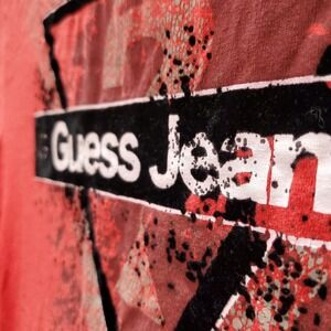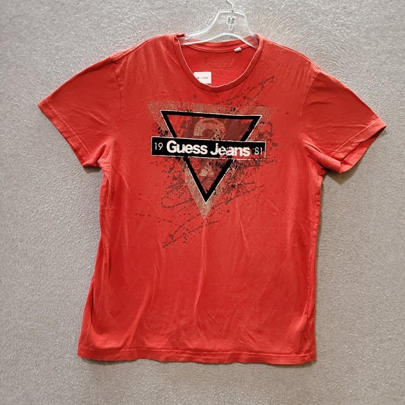 Guess Jeans Men T-Shirt Large Red Logo Graphic Short Sleeve Crew Neck Tee