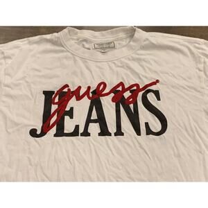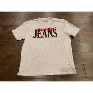 Guess Jeans Mens Guess Jeans Spellout White Short Sleeve T-Shirt Size M MEDIUM.