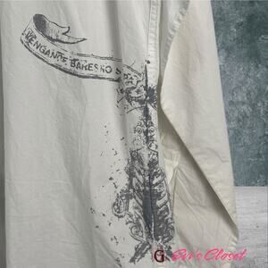 Step back in time with this awesome vintage Guess Jeans white shirt! This unique piece features eye-catching graphic prints that add a touch of retro flair to your wardrobe.