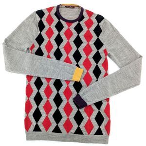 Guess Jeans Merino Wool Argyle Crew Neck Sweater Size Medium/Small