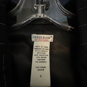 Beautiful Guess Jeans pant suit featuring metallic striping and a satin bow jacket closure. Fun and modern flare on an old school pant suite