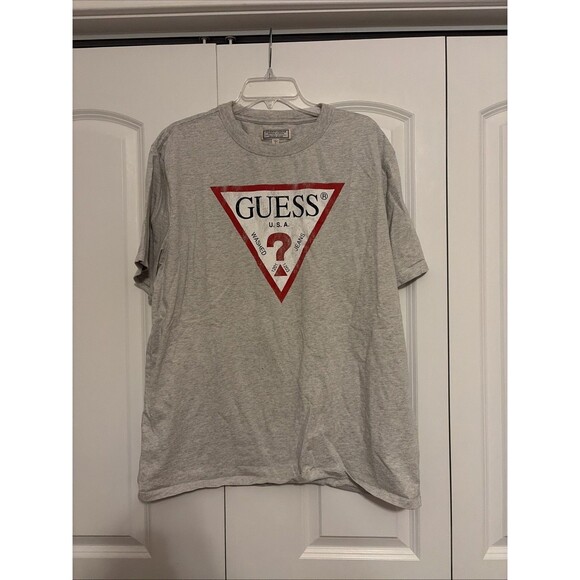 Guess Jeans Original Design Red Logo T-Shirt Grey Vintage Style Men’s Large