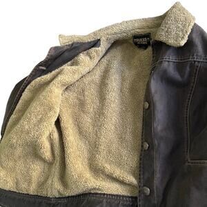Guess Jeans Sherpa Lined Denim Jacket M EUC Taupe Wash Faux Shearling