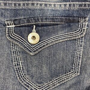 Guess Jeans Short Cut Off Denim Shorts with Embroidered Pockets, 5 Pocket Design, Button/Zipper Closure. Some Stretch.