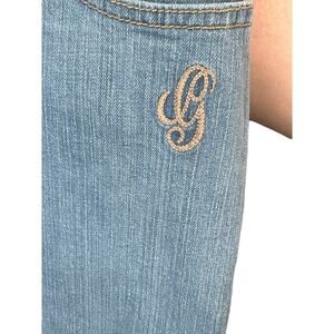 Guess Jeans Skirt Denim Light Wash Flared Hem Initial Detail Womens