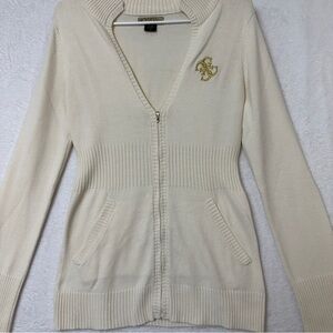 Guess Jeans Sweater Womens Large Cream Zip Cardigan Pockets Knit Vintage Y2K