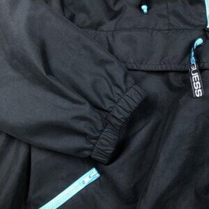Guess Jeans USA Adult Size Medium Jacket Black Blue Polyester Windbreaker Lined