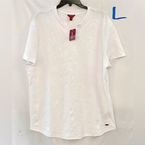 Unleash your bold spirit with this GUESS JEANS must-have. Crafted for the audacious trendsetter, this short-sleeved T-shirt features a crew neck and a striking logo appliqué that sets a new standard for casual luxury. Every stitch exudes confidence, made with a blend that ensures both comfort and a flattering fit. From the bustling streets to an electrifying night out, make your mark in vibrant Verde. Step out and stand out in GUESS JEANS. Material: 48% Cotton, 47% Modal, 5% Spandex Country of origin: Bangladesh Color: Verde