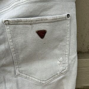 Guess Jeans Vintage 90's Y2k Distressed Sexy Curve Punk Rocker Mid Rise Sz 30 in very good pre-owned condition, has the leather logo patch on the back right pocket.
