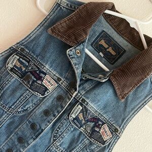 Guess Jeans Vintage Y2K Patchwork Pocket Corduroy Collar Denim Vest Size Large