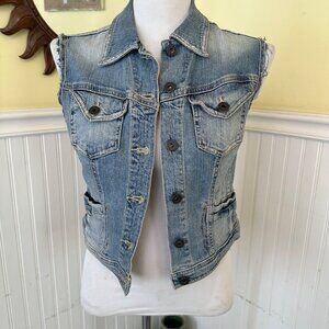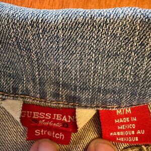 Guess Jeans Vintage stretch Denim jean jacket vest embroidered flower sleeveless M