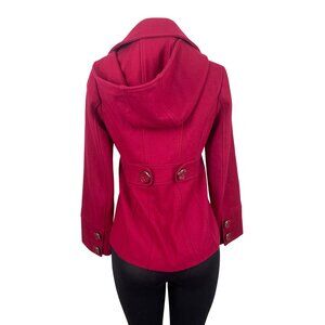 Guess Jeans Womens Red Hooded Peacoat Jacket With Button Accents & Pockets Sz XS