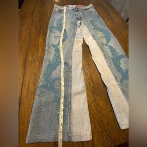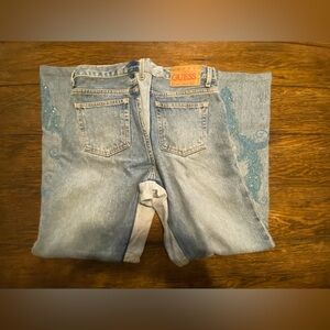 Guess Jeans Y2K Vintage Split Denim Sequin Feather Paisley Pattern Size 30 B27