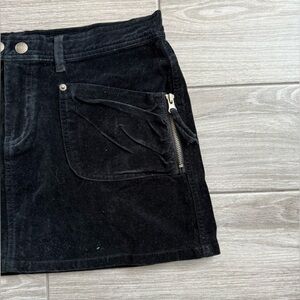 Stylish black mini velvet skirt perfect for any occasion. Features a sleek design with convenient pockets.