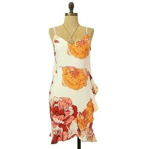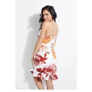 Guess Juleah Mini Dress Size 0 Ruffle Hem Ivory Radiant Poppy NWD B8
