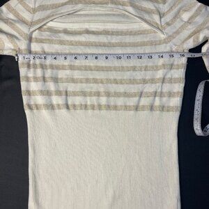 Guess Keyhole Knit Sweater w/ Long Sleeves in White/Gold Stripes SZ-LG