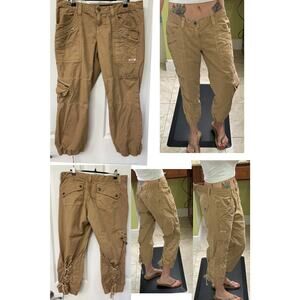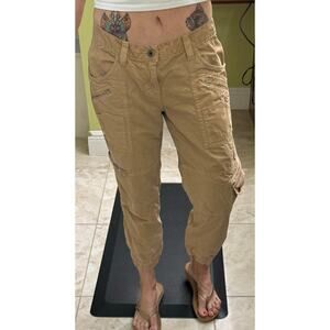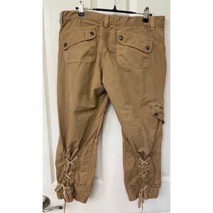Guess Khaki utility jogger pant size 30 100% cotton tie lace back of pants camel