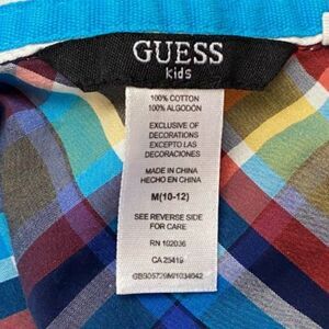 Guess Kids 100% Cotton Plaid Button Down Shirt Boys Size M 10-12