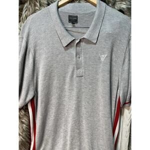 Guess Knit Polo Gray With Red and White Strip Men's Size Xl