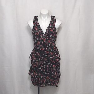 Guess Los Angeles Sleeveless Floral Ruffled Tiered Wrap Mini Dress XS
