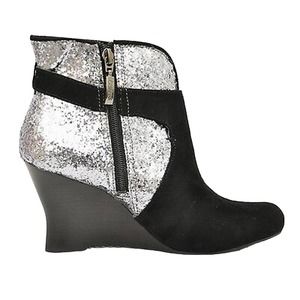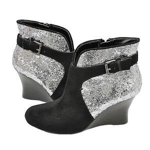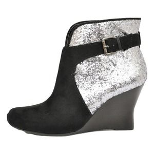 Guess LANDAN Ankle Boot Wedge Bootie Heel Pump Black/Silver Glitter 6/7.5/9.5