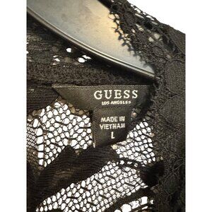 Guess Lace Black Short Sleeve Blouse Womens Size L Elegant Stretch Design