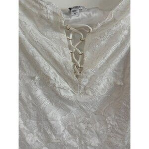 Guess Lace Long Sleeve Top Womens XS Nylon Spandex White Floral Lace-Up Boho