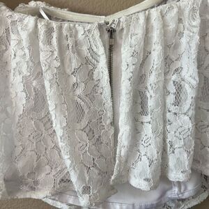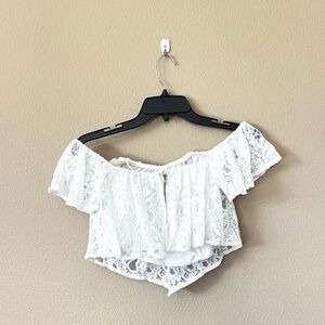 White lace corset crop top by Guess! Off shoulder. Back zip closure. Sweetheart neckline. Size XS. In great condition!
