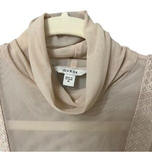 Guess Lace Turtleneck Sheer Long Sleeve Top Blush Pink Medium Feminine Chic