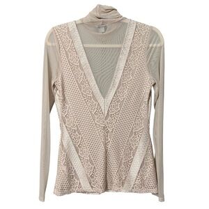 Guess Lace Turtleneck Sheer Long Sleeve Top