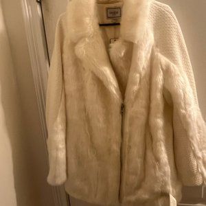 Guess Ladies white Faux Fur size Large NWT Length 77”Bust 62”