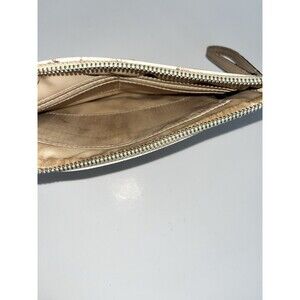 This Guess Large Floral Wristlet Clutch Wallet in White and Tan is a stylish accessory for everyday use. The pouch style clutch features a zip closure. The exterior is made of faux leather with a beautiful floral pattern, and the lining is fabric.