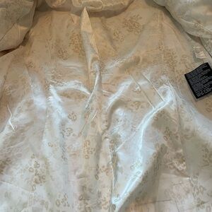 Gorgeous. New! No stains tears or missing buttons. So timeless and chic. Dress up or down. Detachable collar makes it look like a second coat. Has a great swing to it. Flattering!