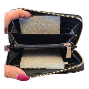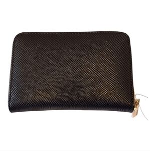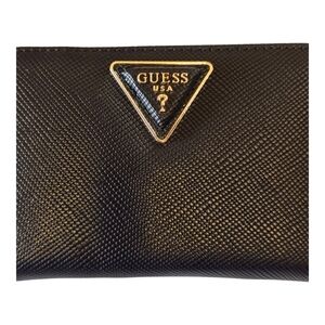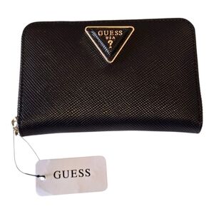 New with tags Guess Laurel black faux leather wallet offers multiple card slots and a change pocket kept secure with the zip-around closure. Goldtone hardware, saffiano pattern polyurethane material. Brand new excellent condition.