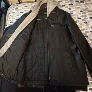 Stylish leather jacket and hoodie from Guess! Barely worn!