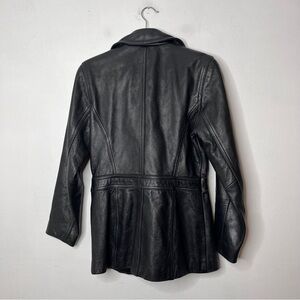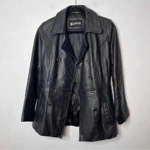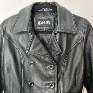 Guess Leather Jacket Size Medium Black Peacoat Double Breast Vintage 90s