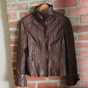 Guess Leather Jacket, Very Soft, Brown, Front Zip, Size Large