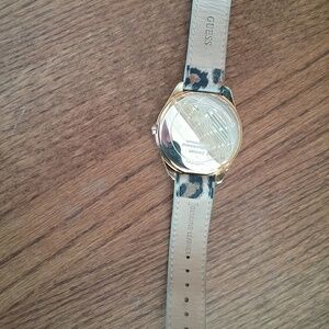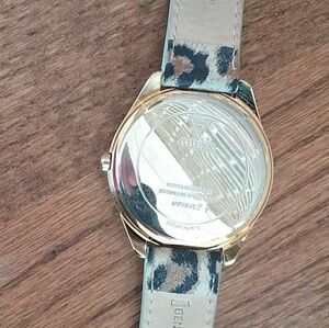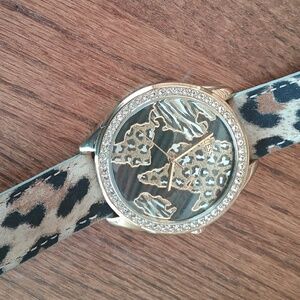Guess Leather Leopard Print World Face Watch