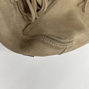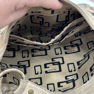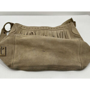 Guess Leather Suede Beige Tan Y2K Hobo Shoulder Fringe Top Zip HandBag Purse