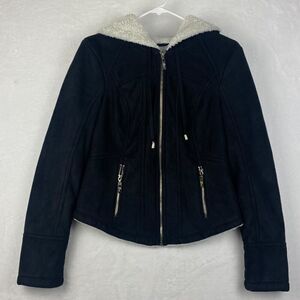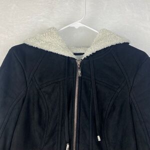 Guess Lenzie Jacket Womens Medium Black Faux Suede Hooded Full Zip Pockets