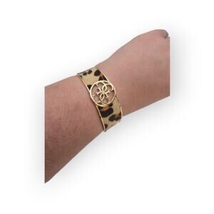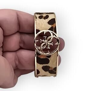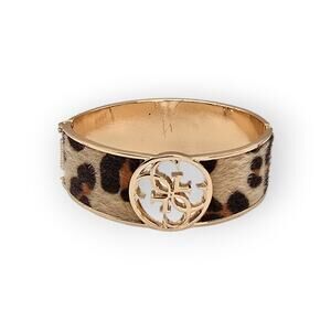 Guess Leopard Faux-Fur Logo Hinged Bangle – Gold-Tone Statement Bracelet