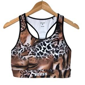 Guess Leopard Print Sports Bra Racerback Brown/ Tan Sz: L Gym Active Wear Yoga